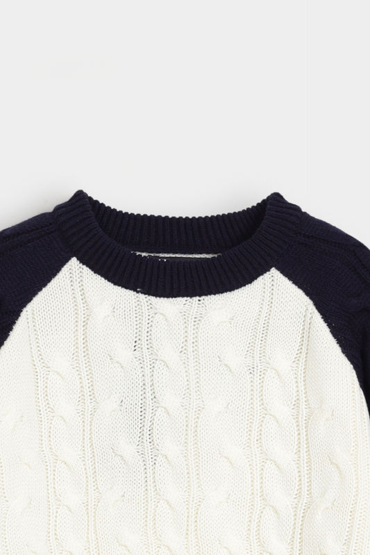 Color-Block Cable Knitted Sweater