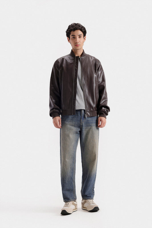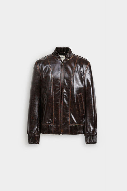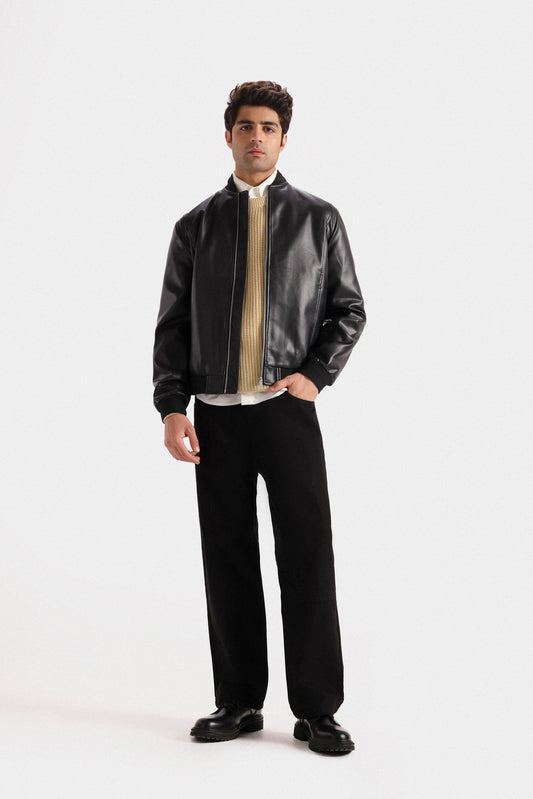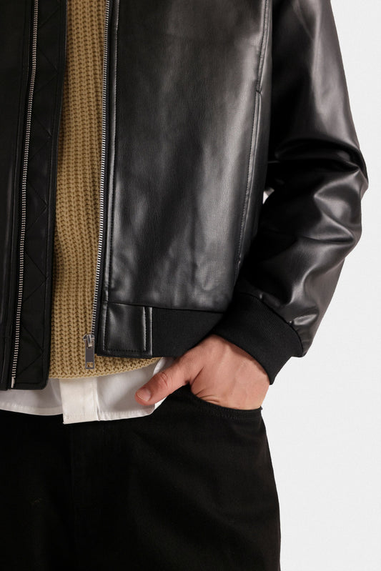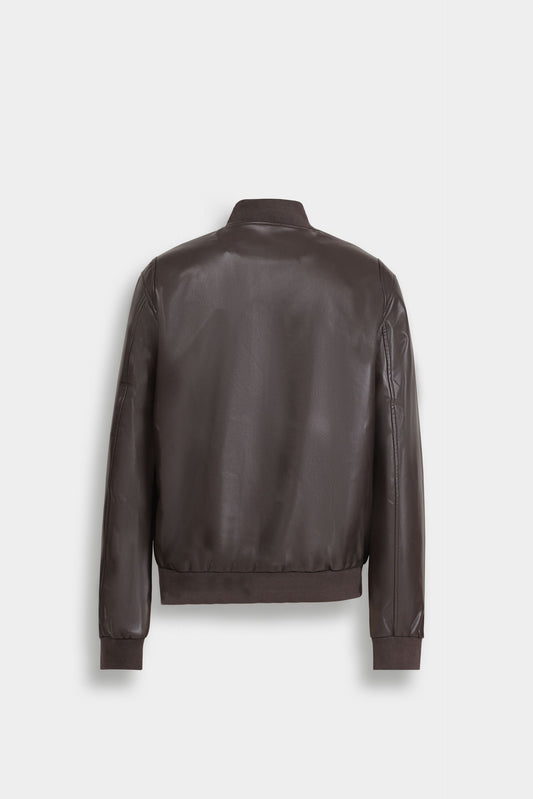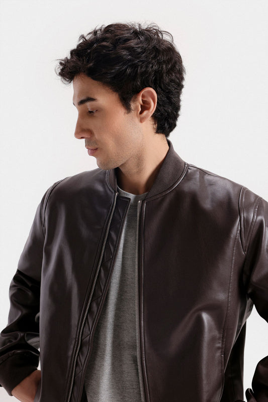 Elevate your wardrobe with this sophisticated faux leather bomber jacket, crafted to deliver a sleek and modern silhouette. Its smooth finish and tailored fit provide both style and comfort, making it an ideal choice for versatile, polished layering. Perfect for transitioning through seasons, this jacket combines timeless design with contemporary edge.
