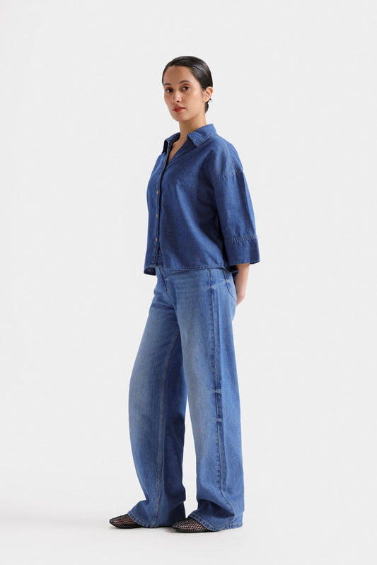 Cropped Basic Denim Shirt