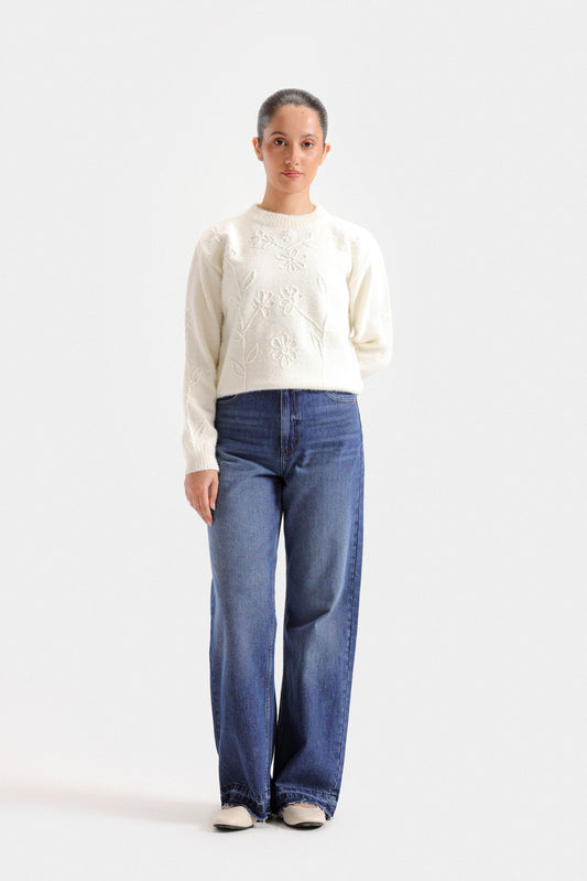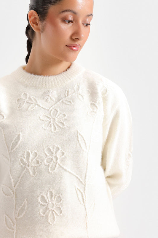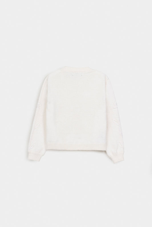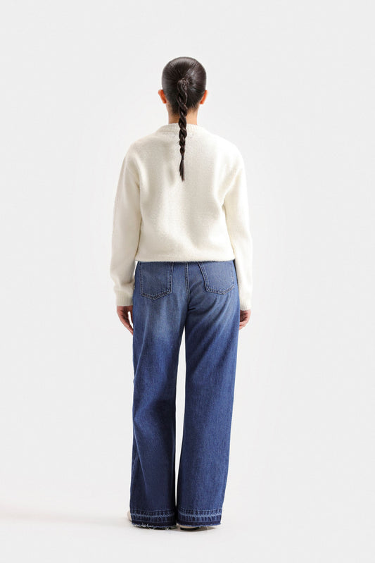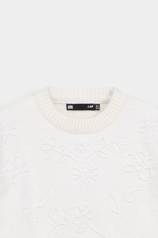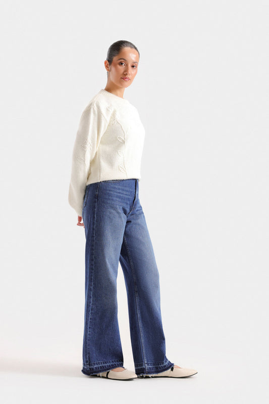 Elevate your wardrobe with this cropped sweater featuring a refined crew neck and subtle neck button accents. Crafted with ribbed fabric, it offers both texture and a tailored fit, while full sleeves provide warmth and elegance. Perfect for layering or wearing alone, this sweater combines classic design with modern sophistication for versatile styling.