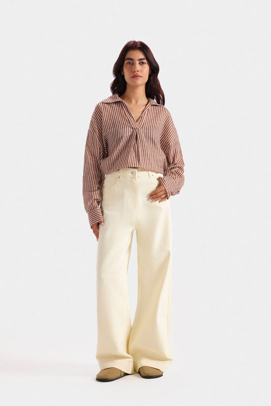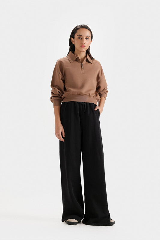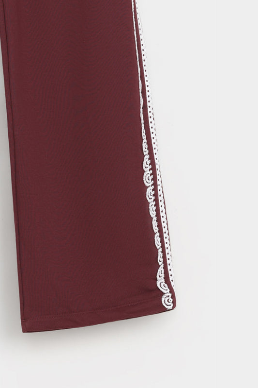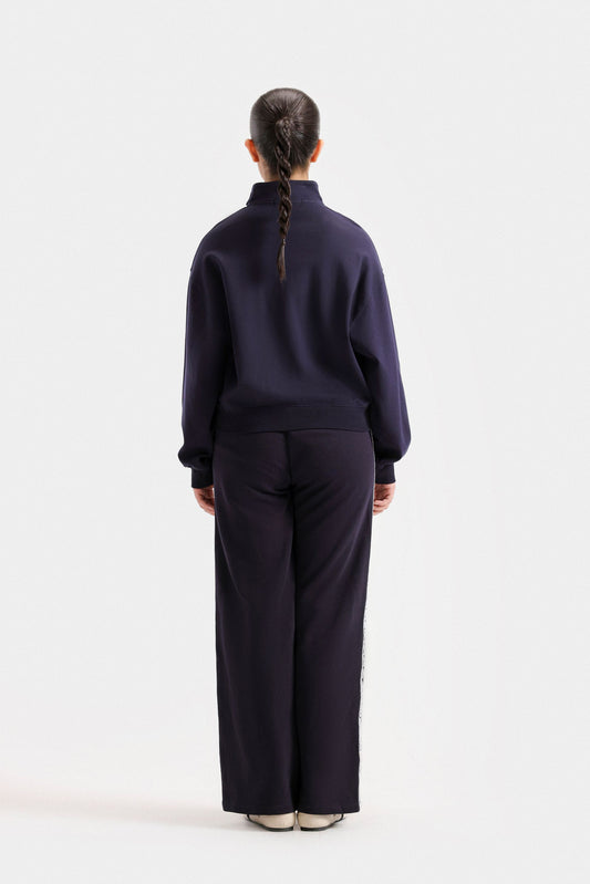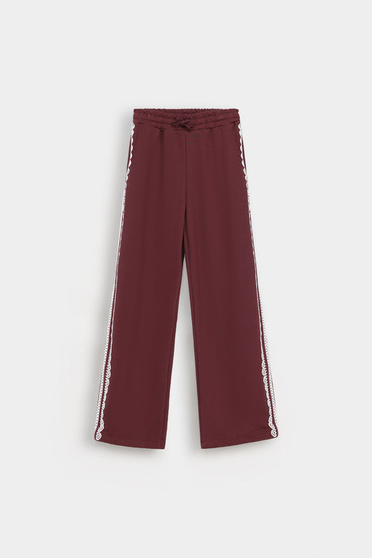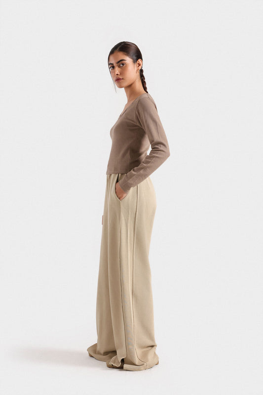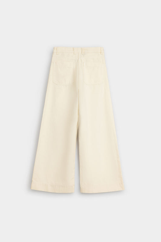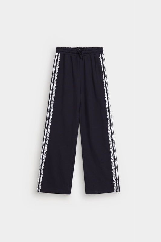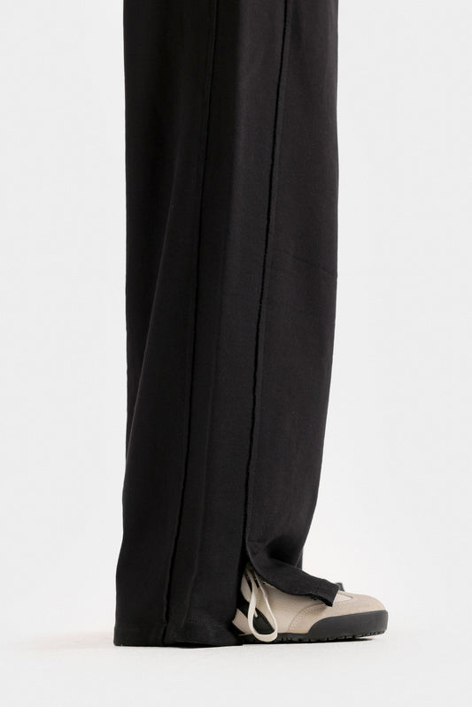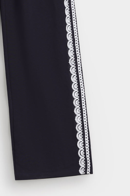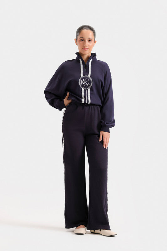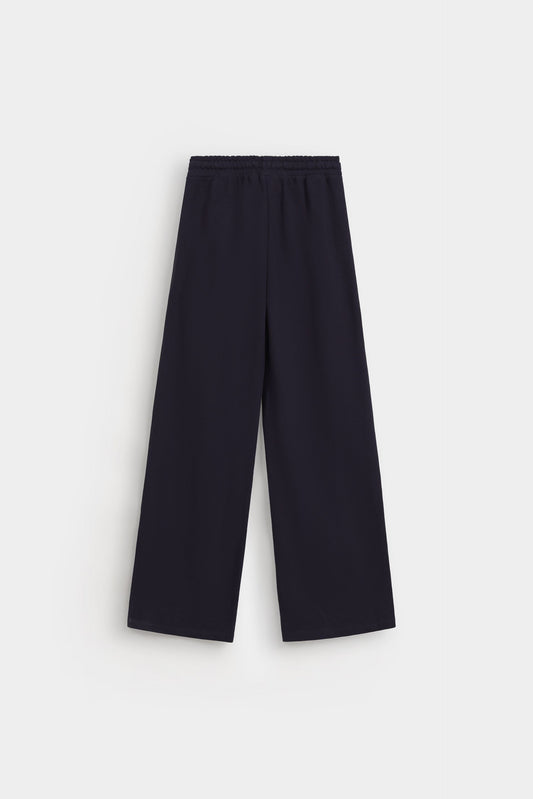 These wide-leg trousers feature elegant piping details that enhance their silhouette with refined tailoring. Designed with two front pockets, they combine style and practicality, making them ideal for a polished, comfortable look throughout your day. Perfect for those seeking sophistication with effortless ease.
