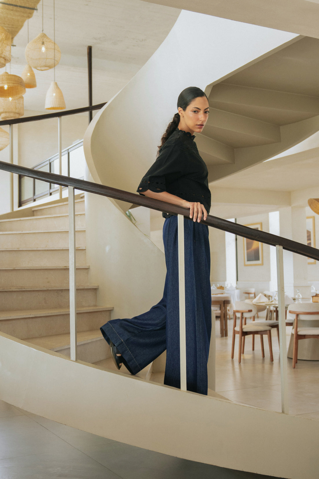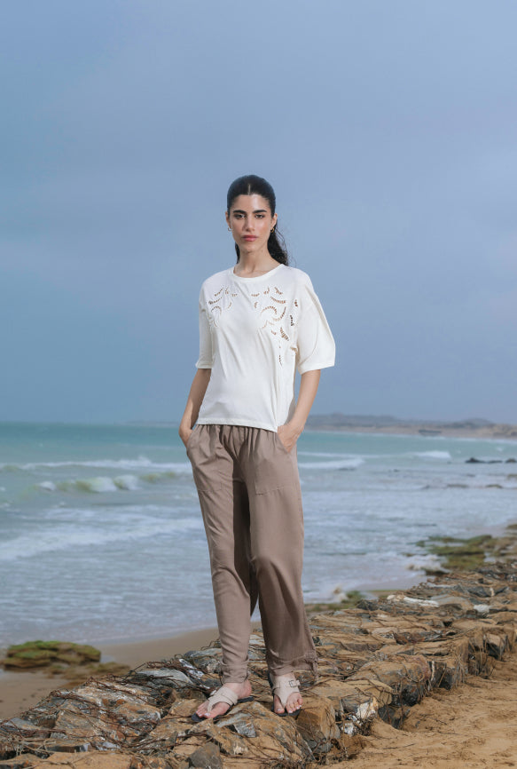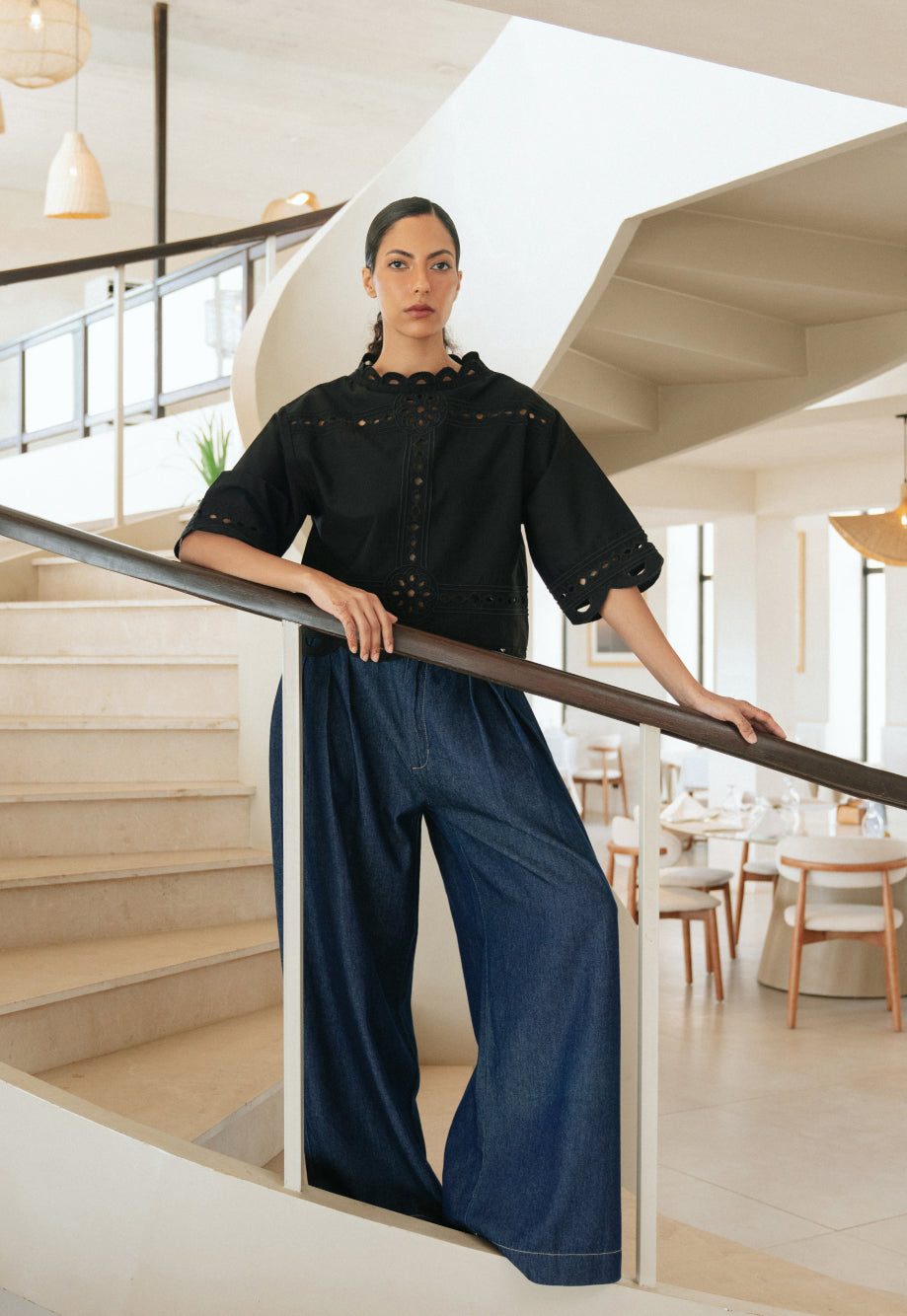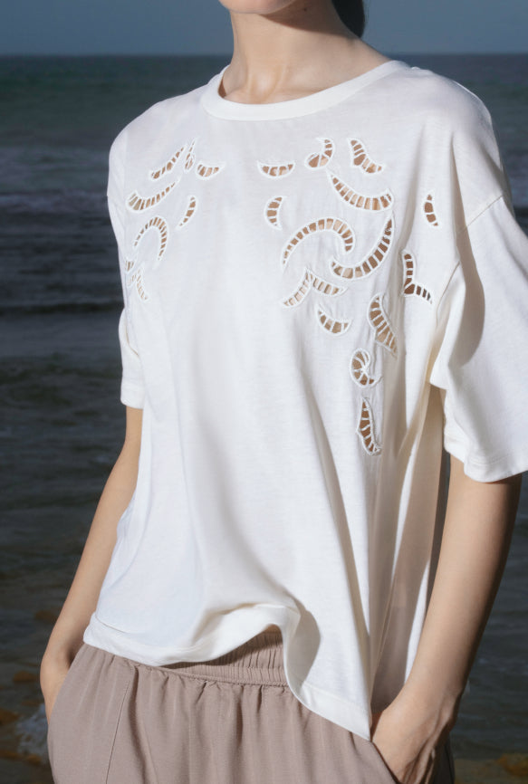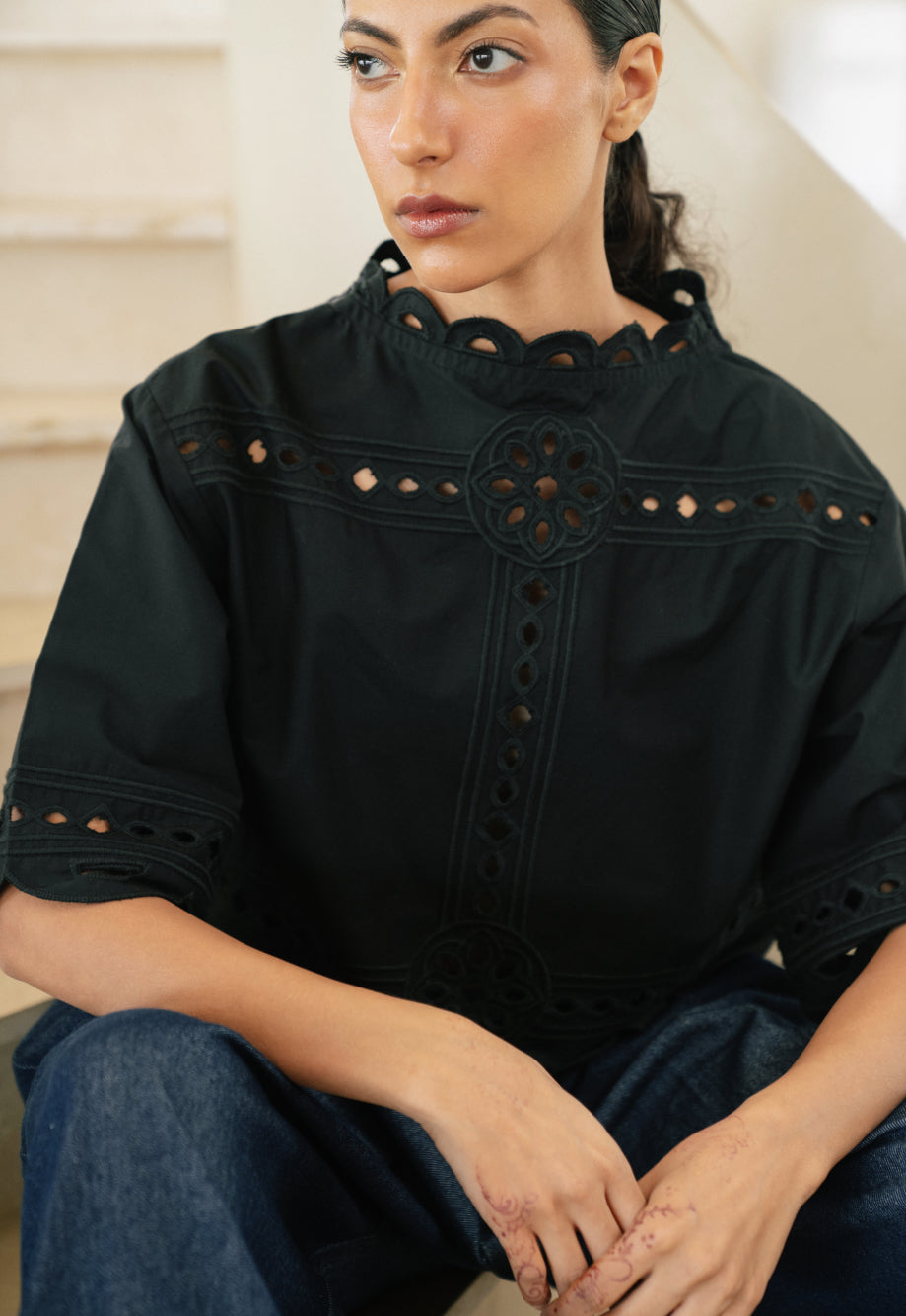 Embroidered Cutwork Black Top