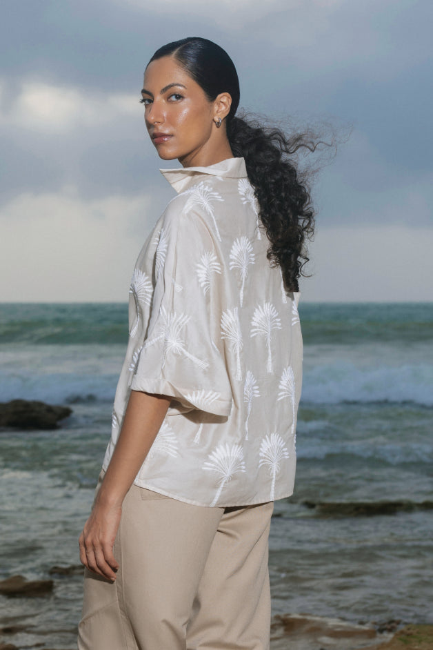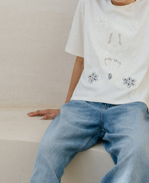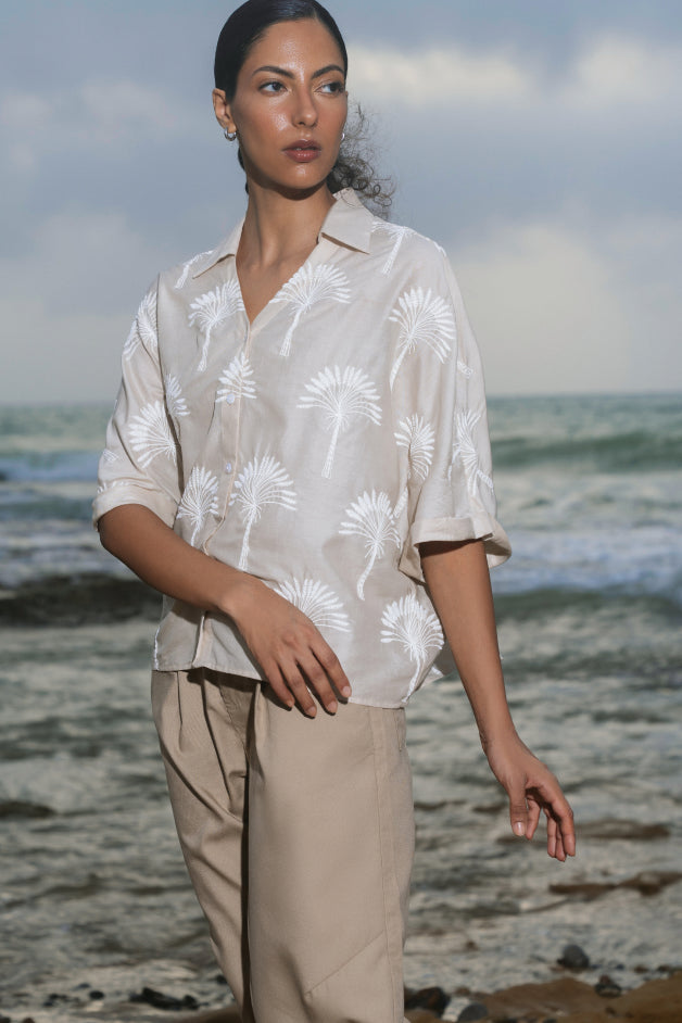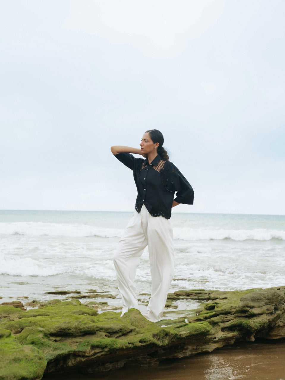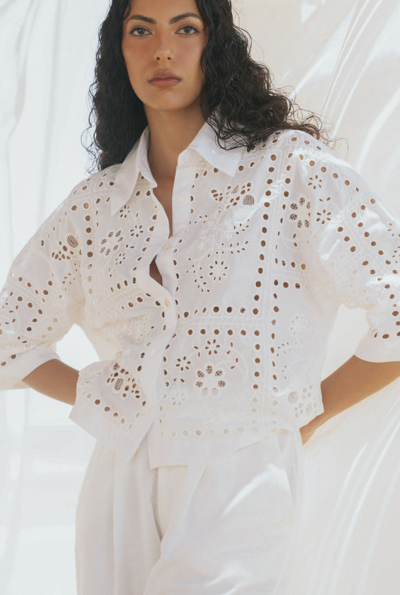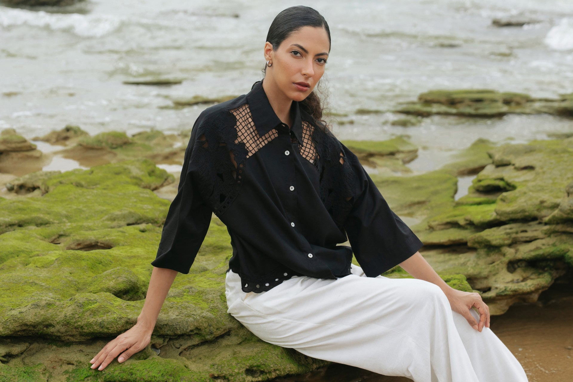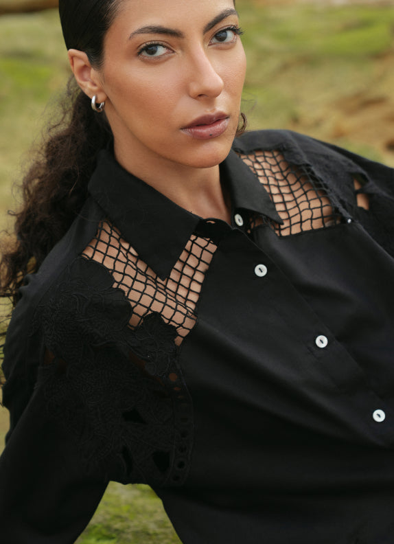 Relaxed Floral Cut-work Embroidered Black Shirt