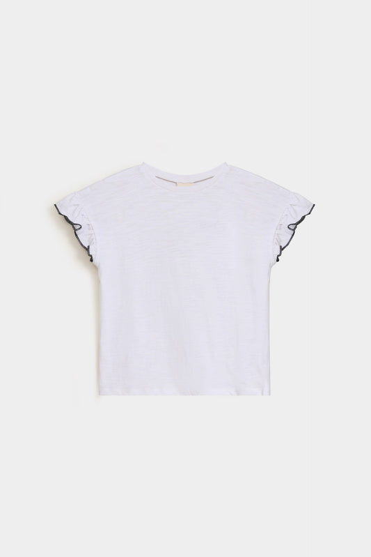Add some playful flair to your wardrobe with our Basic Sweatshirt With Ruffle Sleeves! Stay warm and stylish with full sleeves and a casual look. Perfect for everyday wear, this sweatshirt will keep you cozy and on-trend.