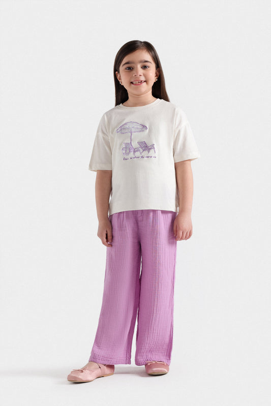 This Printed Co-Ord Set brings effortless charm with its short sleeves and playful knotted hem. Featuring a front button design and a relaxed fit, it pairs perfectly with wide-leg trousers for a breezy, stylish look. The elasticated waistband adds comfort, making it your go-to outfit for fun, casual days.