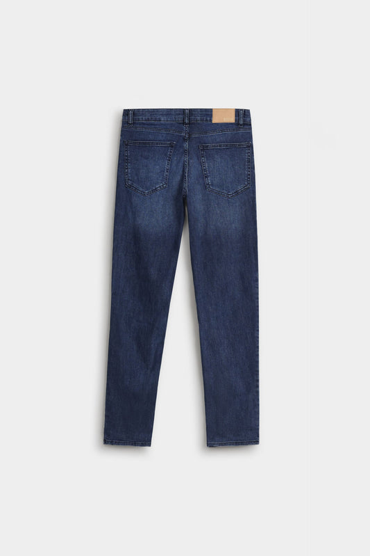 Expertly tailored for the modern man, these slim fit jeans deliver a refined silhouette that transitions seamlessly from casual to smart-casual settings. Featuring a secure button and zip closure paired with practical pocket design—two front pockets for everyday essentials and two back patch pockets for added functionality—these jeans combine timeless style with contemporary fit. The streamlined cut flatters the frame while maintaining comfort, making them an indispensable staple for any discerning wardrobe.